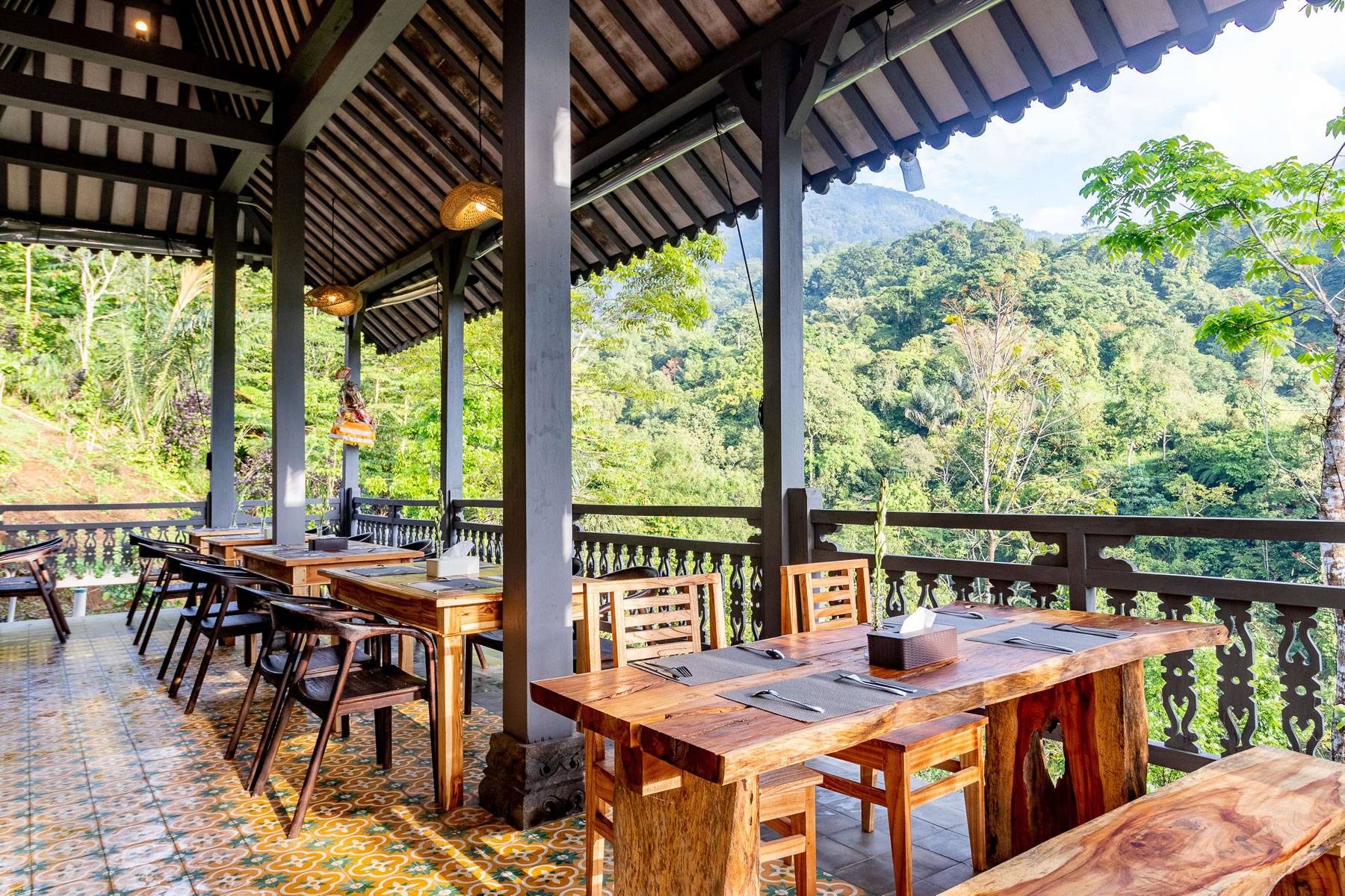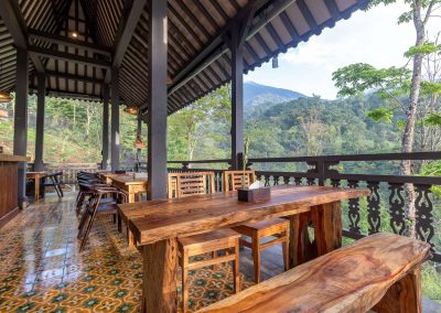 Perched on a cliffside overlooking a lush forest, the restaurant provides a dining experience that engages all the senses. Every bite feels more enjoyable, every sip more refreshing, as you take in the tranquil view and the cool breeze of Jatiluwih’s highlands.